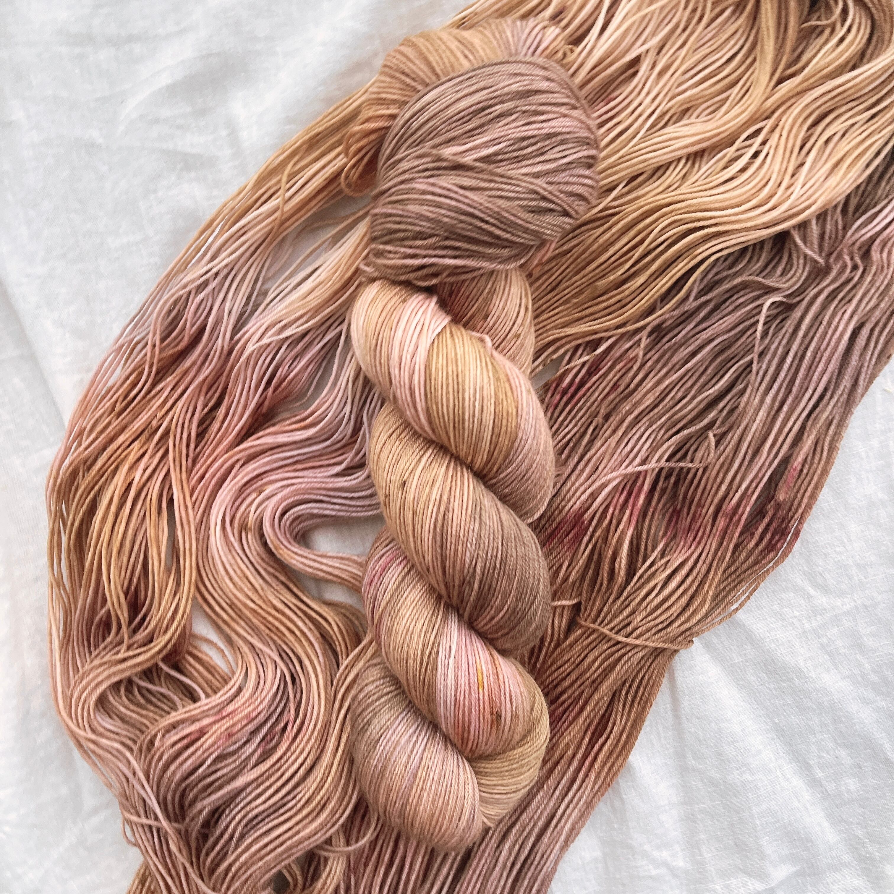 ・手染めのため、同時に染めた糸の中でも、ひとカセごとに色の入り方が少しずつ異なりますが、手染めの特性としてご了承ください。