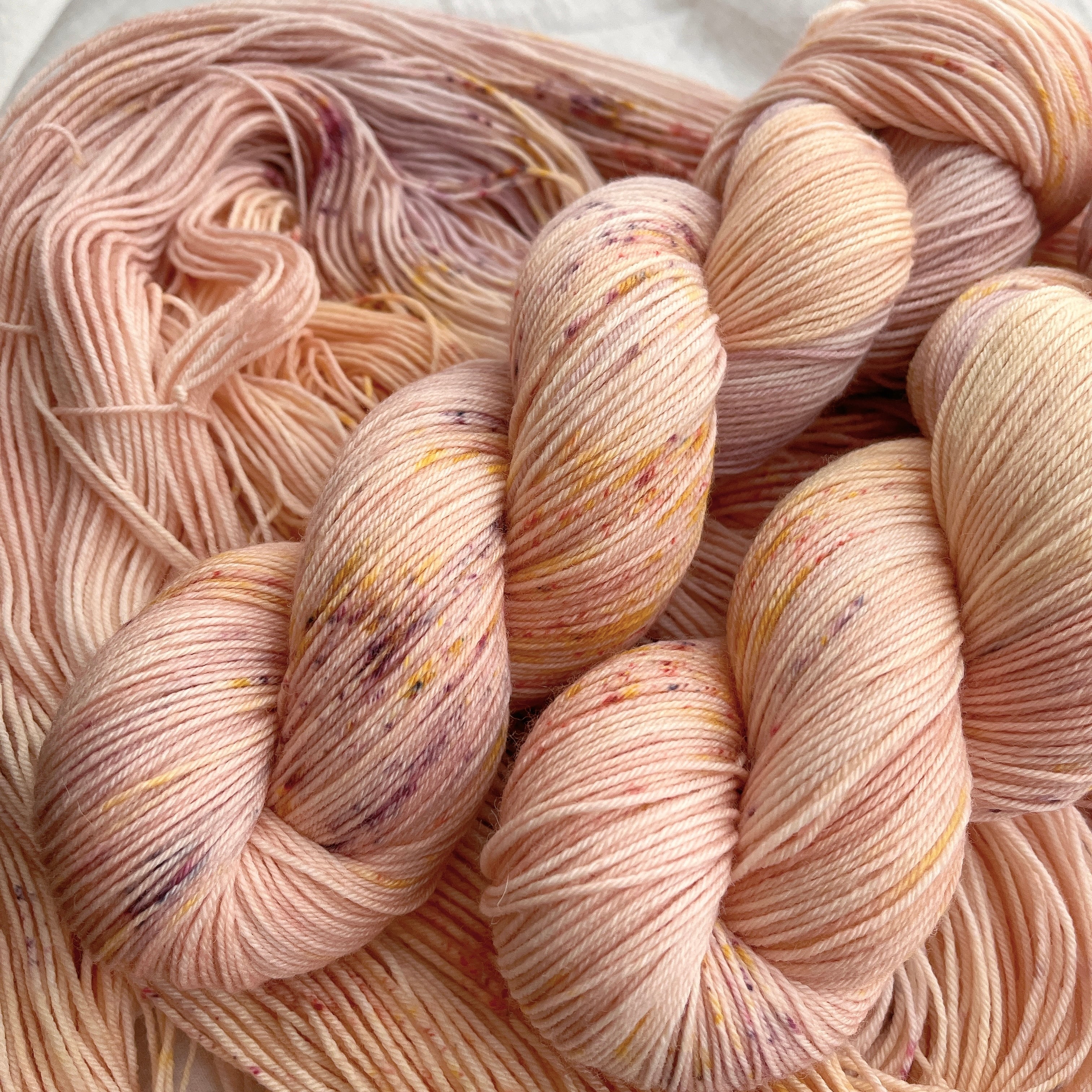・手染めのため、同時に染めた糸の中でも、ひとカセごとに色の入り方が少しずつ異なりますが、手染めの特性としてご了承ください。